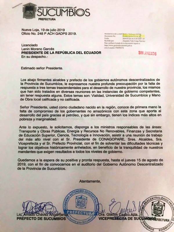 EXIGENCIA AL PRESIDENTE LENIN MORENO