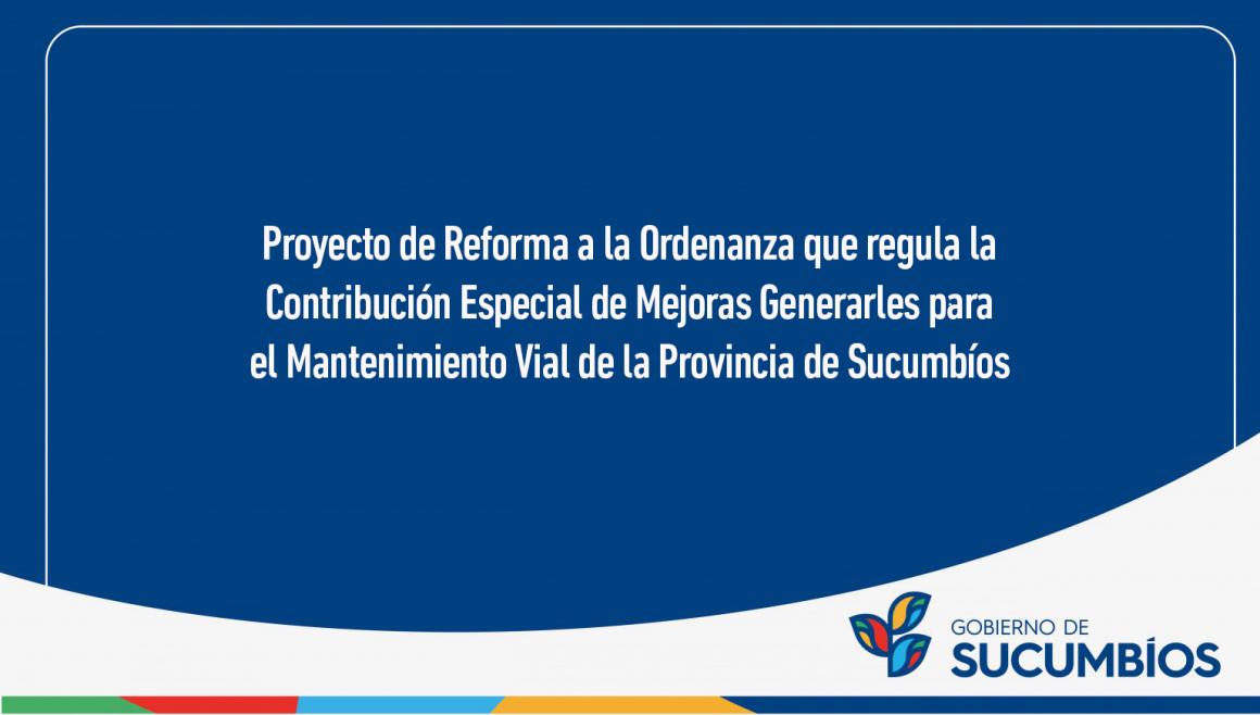 Proyecto de Reforma a la Ordenanza que regula la Contribución Especial de Mejoras Generarles para el Mantenimiento Vial de la Provincia de Sucumbíos