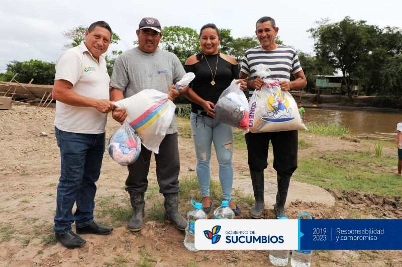 Los ciudadanos que viven en los barrios de la parroquia Puerto El Carmen, especialmente en la ribera del río Putumayo, son quienes se beneficiaron de raciones de comida, kits de ropa y agua en galones.