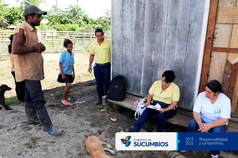 La distancia no es impedimento para la acción social que ejecuta Sucumbíos Solidario. Personal técnico se trasladó hasta la comunidad Brisas del Yoyá, parroquia Santa Elena, cantón Putumayo, para asistir a la señora Gloria Mancilla, quien tiene un hijo con discapacidad y vive en extrema pobreza.