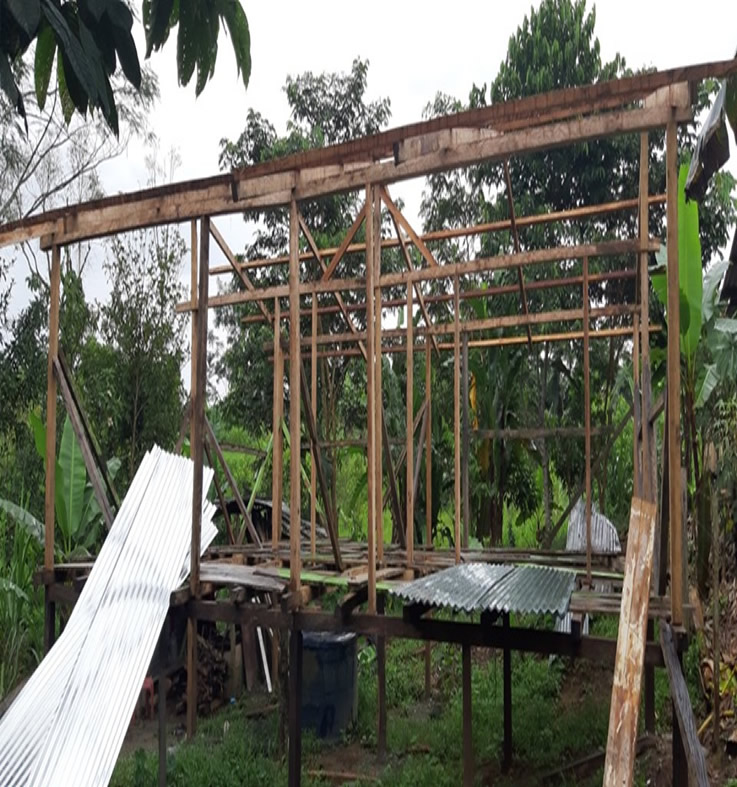 Al ser una familia de bajos recursos económicos no lograron adquirir planchas de zinc para tener un techo digno, por lo que solicitaron ayuda a Sucumbíos Solidario.