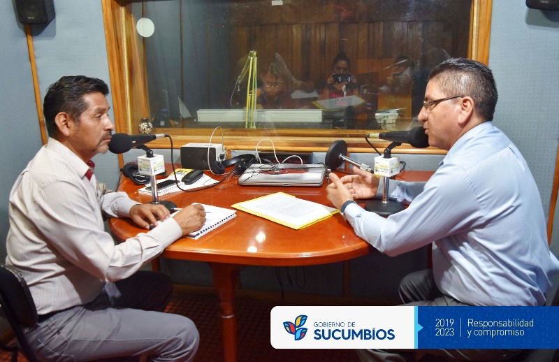En el marco de los primeros 100 días de gestión, el prefecto Amado Chávez acudió a una entrevista en Radio Sucumbíos 105.3 FM, en este diálogo con el periodista Alfredo Chimborazo, informó sobre PRESUPUESTO PRORROGADO, MANTENIMIENTO VIAL, PROYECTOS PRODUCTIVOS, FISCALIZACIÓN DE OBRAS PREVIAMENTE CONTRATADAS.