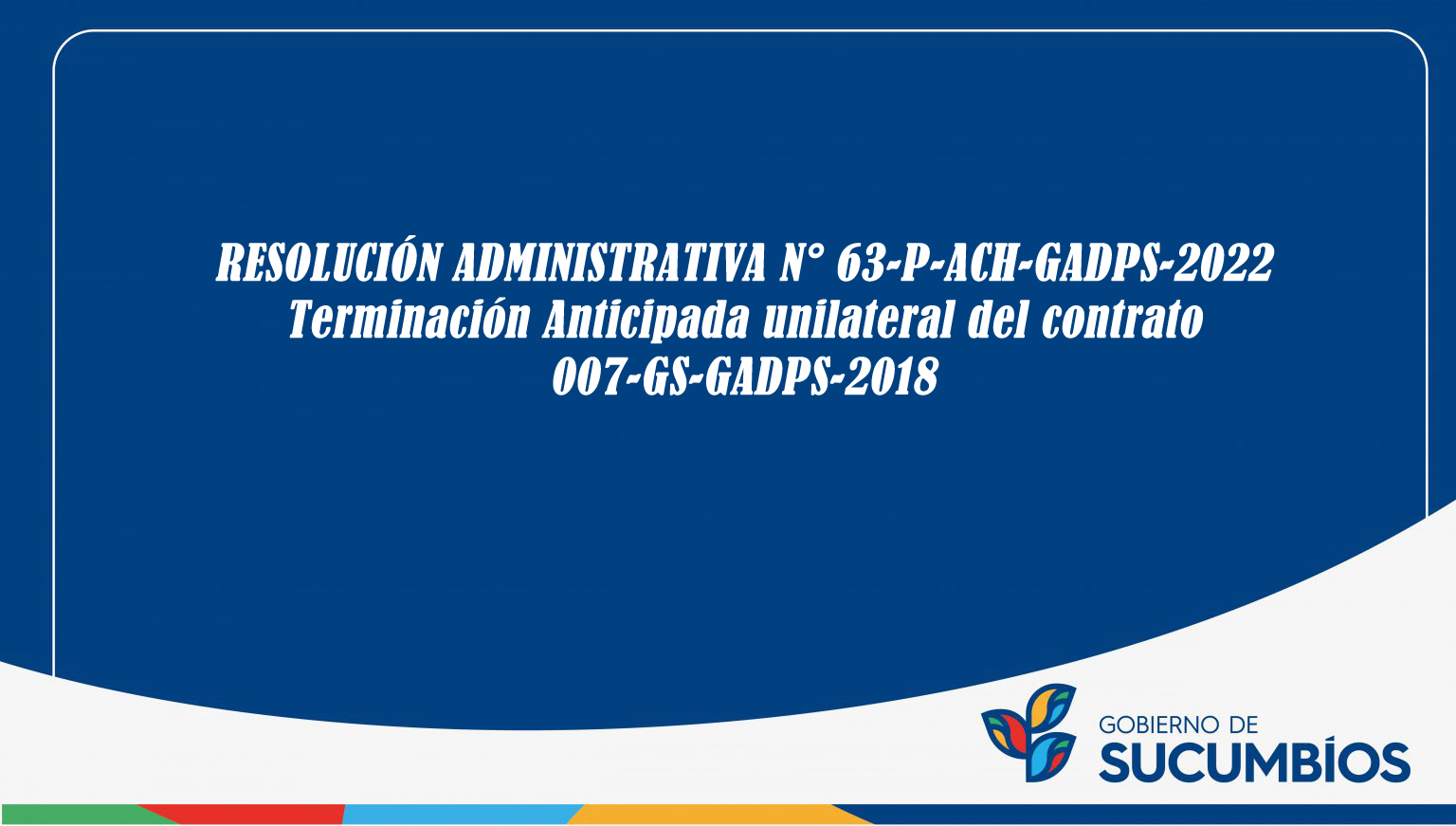RESOLUCIÓN ADMINISTRATIVA N° 63-P-ACH-GADPS-2022 Terminación Anticipada unilateral del contrato 007-GS-GADPS-2018