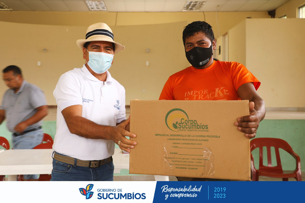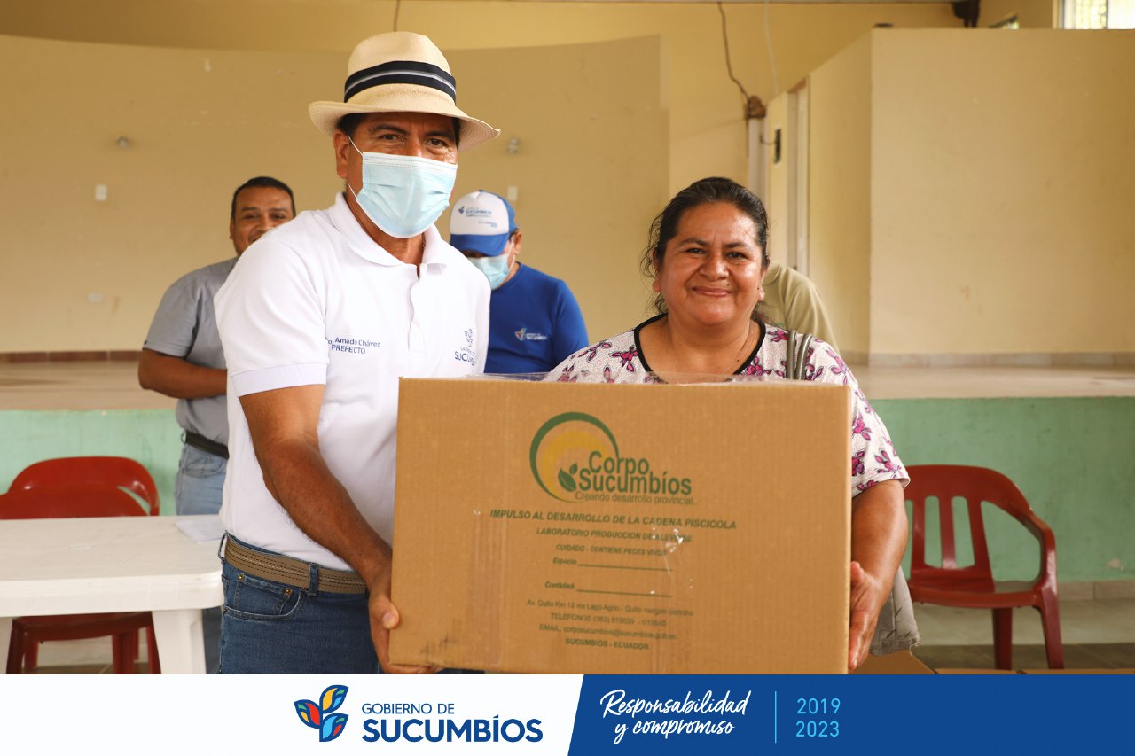 En la parroquia Rosa Florida el prefecto Amado Chávez a través de CorpoSucumbios, entrega 45 mil alevines de tilapia roja a 22 socios de las organizaciones; 29 de Octubre, 24 de Mayo, Innovadores del Futuro y Sembradoras de Vida, dedicadas a la piscicultura del sector.